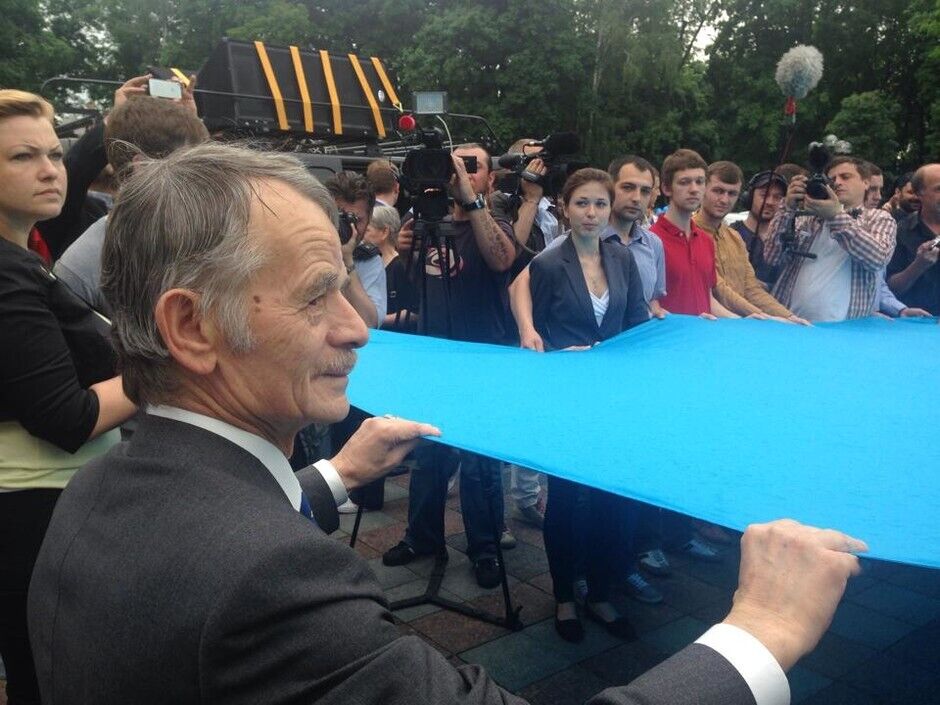 Организаторы акции обещают в скором будущем поднять этот флаг в Симферополе на здании Меджлиса.