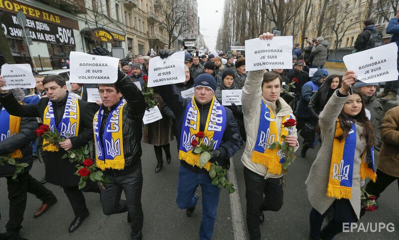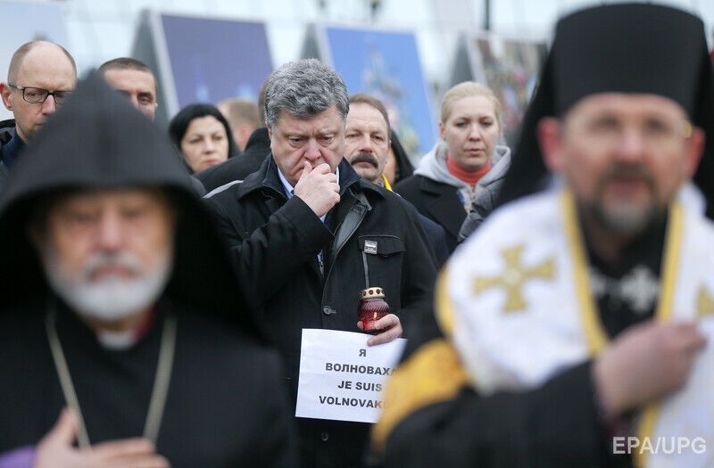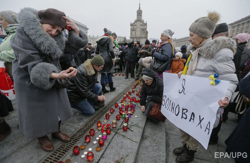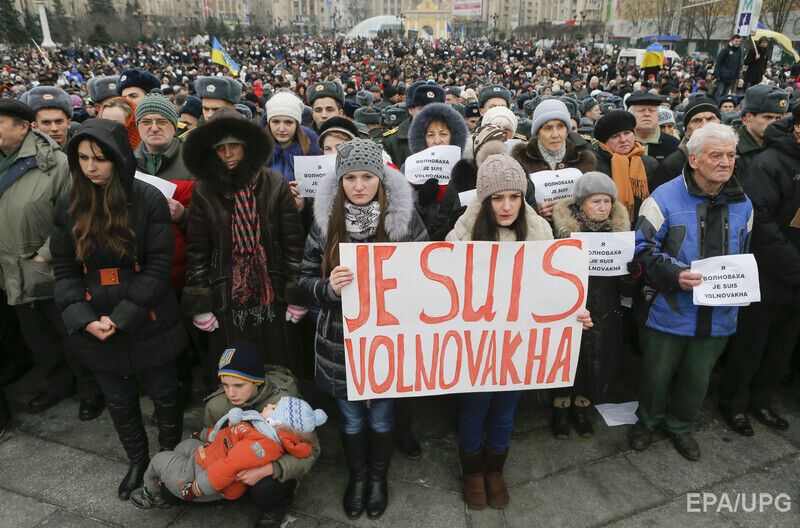 18 января в Киеве прошел молебен по погибшим в результате обстрела автобуса под Волновахой мирным жителям. Люди пришли с цветами и лампадками. Память погибших жителей Донбасса и военных почтили представители всех религиозных конфессий и политики. Президент Петр Порошенко и его супруга пришли с плакатами "Я – Волноваха". В Марше мира и молебне приняли участие курсанты Национальной академии СБУ.