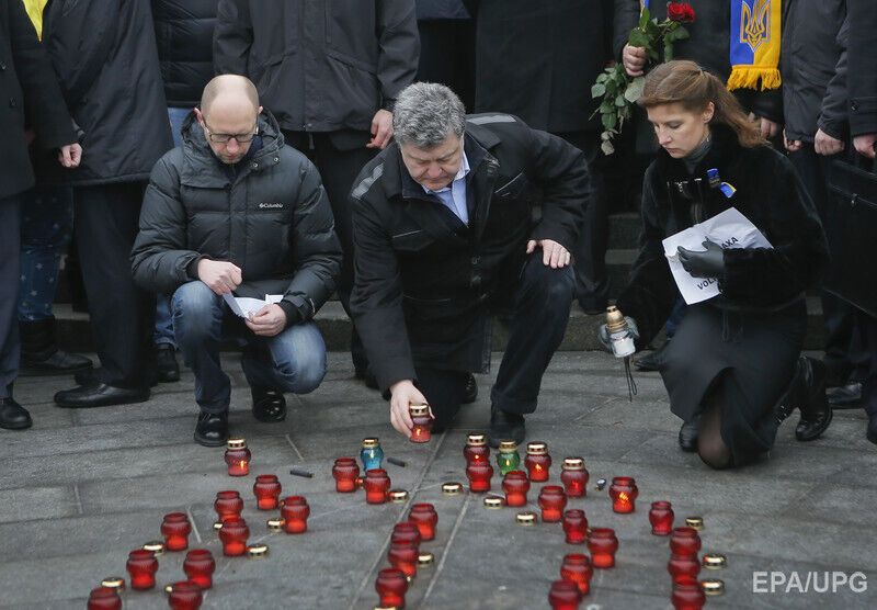 На Майдане в Киеве проходит молебен по погибшим под Волновахой с участием президента и премьера