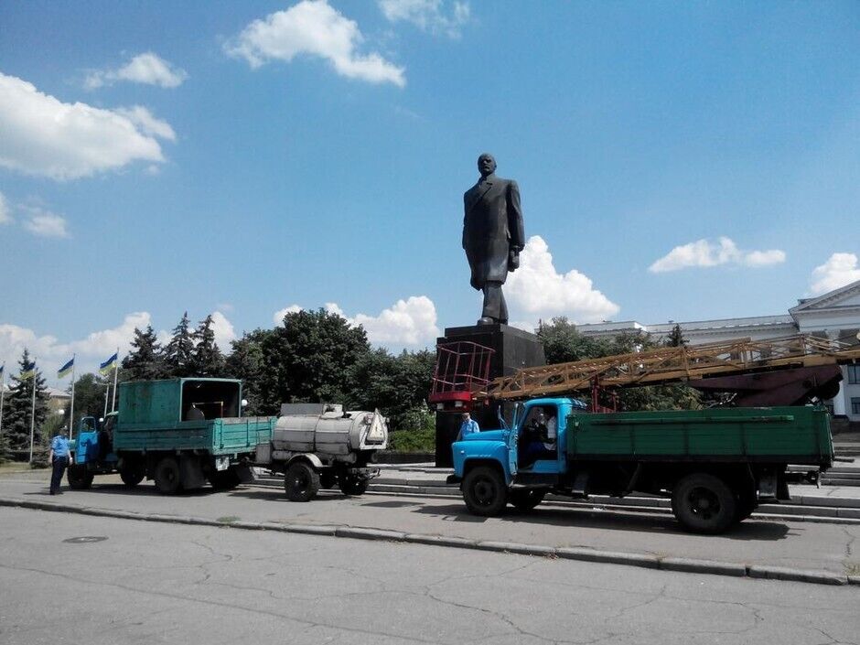 В Краматорске демонтируют памятник Ленину. Фоторепортаж