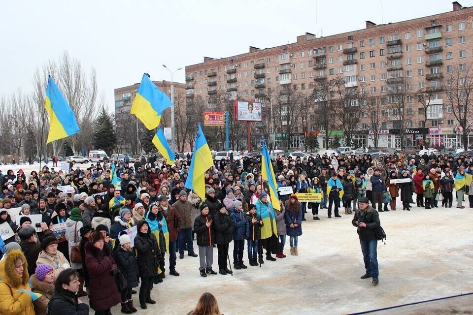 Этот митинг стал не первым для Мариуполя. 4 сентября жители города собрались на площади Ленина на митинг против российской агрессии.