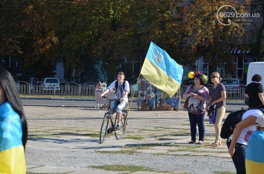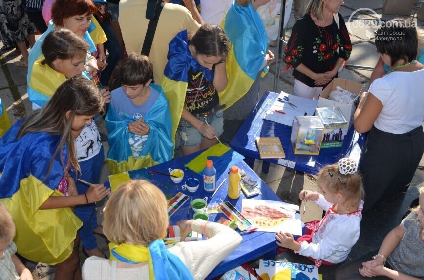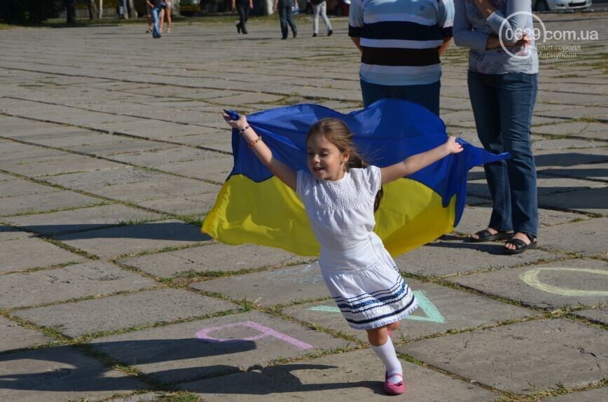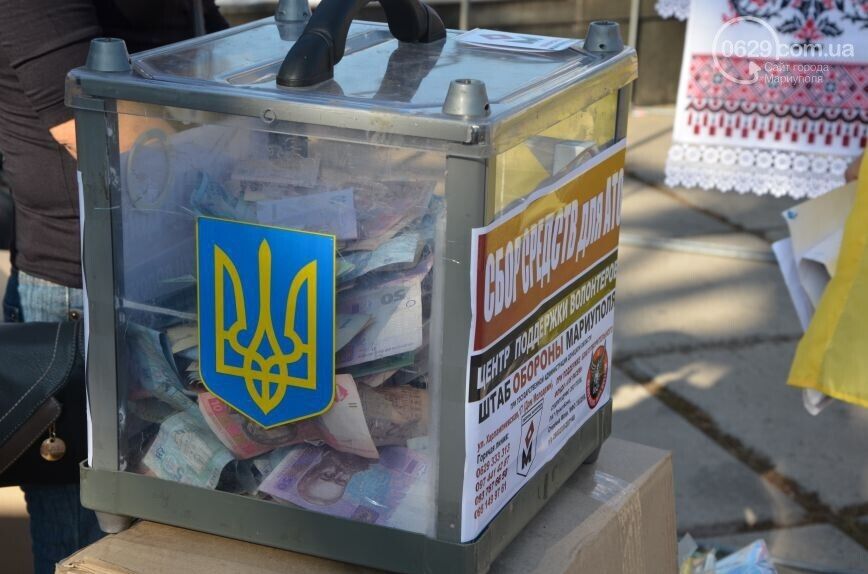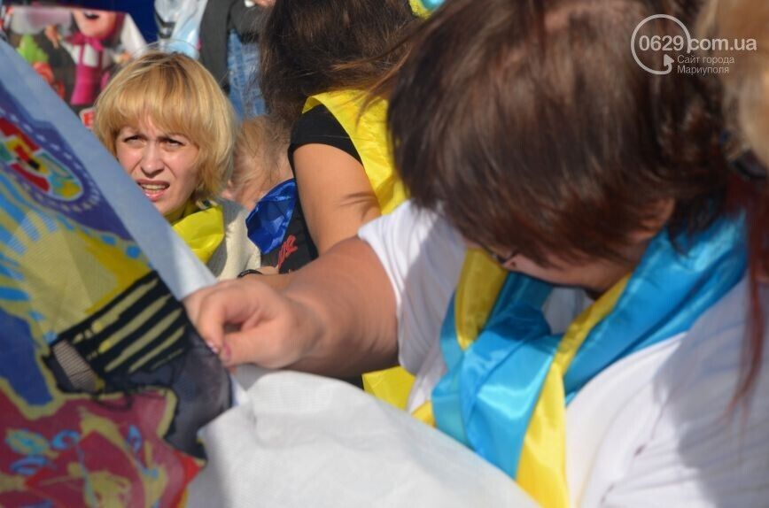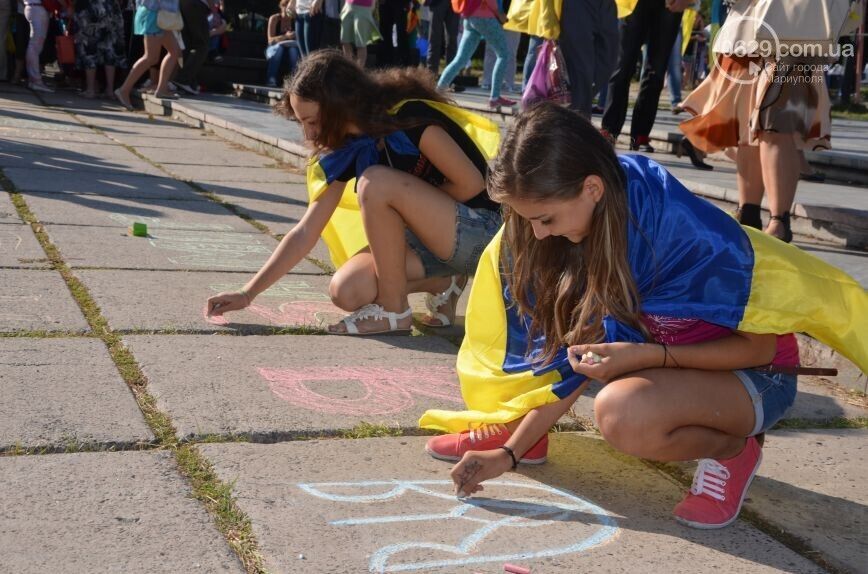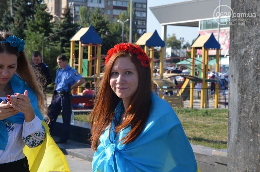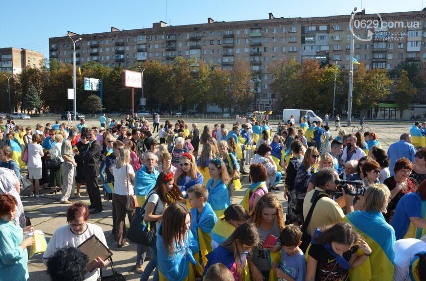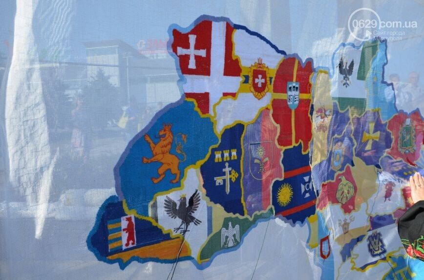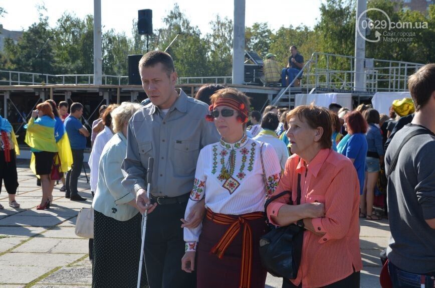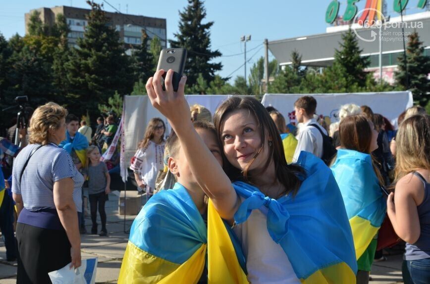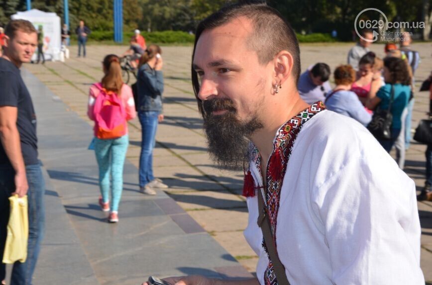 Сотни мариупольцев в вышиванках и с украинской символикой собрались на площади Свободы, чтобы выступить за мир и единую Украину. Каждый имел возможность приобрести флаг у организаторов акции, пожертвовав любую сумму на помощь военным. Наибольшим вниманием пользовалась карта Украины, вышить которую мог любой присутствующий. Мариупольцы своими руками "шили" Донецкую область. Ранее свою часть карты вышили жители Западной Украины, далее к акции присоединится центральная часть страны.