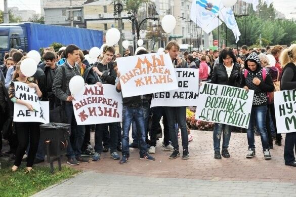 Жители Николаева вышли на улицы, призывая власть обеспечить мир в Украине, сообщает 112.ua. Митингующие держали плакаты "Мы выбираем жизнь", "Плохой мир лучше хорошей войны" и "Мы хотим мирного неба для детей". На митинг собрали около трехсот человек.