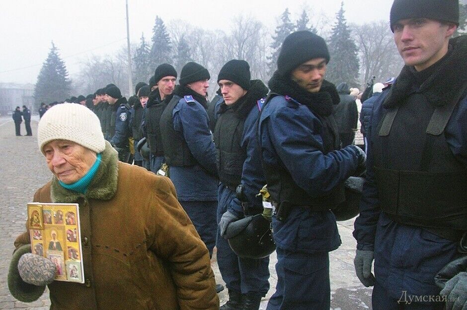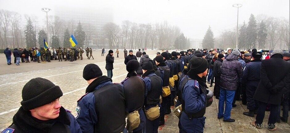 В воскресенье, 7 декабря, на Куликовом поле в Одессе прошли сразу два митинга – традиционно собирающихся на этом месте антимайдановцев и сторонников единой Украины, сообщает "Думская". Милиция, которая стала живой оградой между оппонентами, не позволила перейти им от оскорблений к действиям, и примерно спустя час митингующие разошлись по домам.