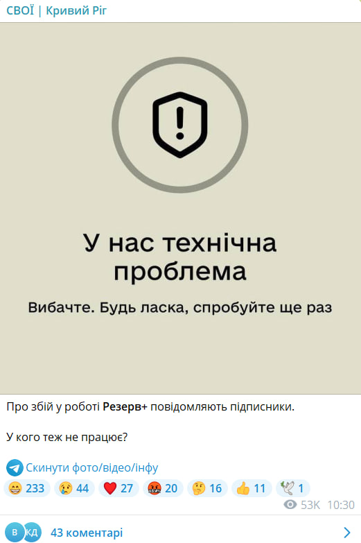 Скриншот: СВОЇ | Кривий Ріг / Telegram