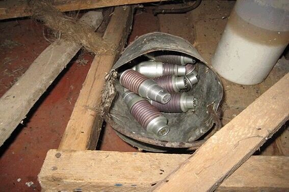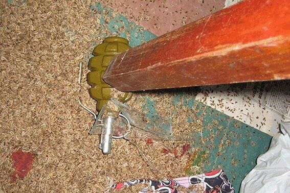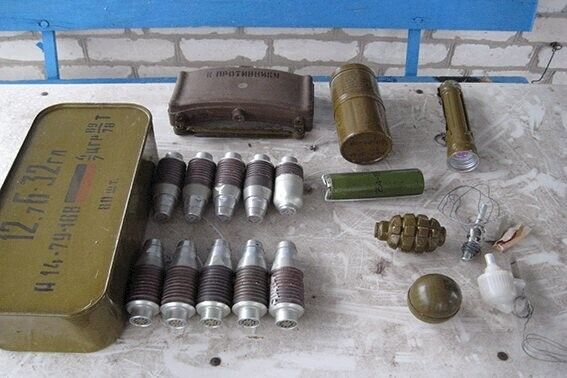 "Во время тщательного обыска из тайника изъяли противопехотную мину МОН-50, ручную противотанковую гранату, две гранаты РГД-5 и Ф-1, сигнальный патрон, металлический ящик с 80 патронами, гранату ВМГ-К, гранаты к автоматическому станковому и подствольному гранатометам, а также один запал к ручной кумулятивной гранате", – говорится в сообщении.
