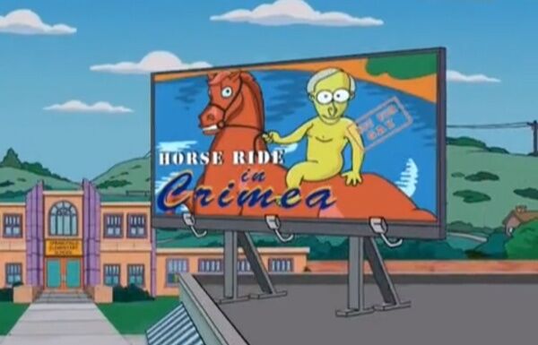Перед школой Спрингфилда появился билборд с голым Путиным на коне и надписью "Верховая езда в Крыму" на английском языке.