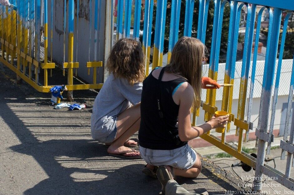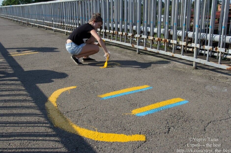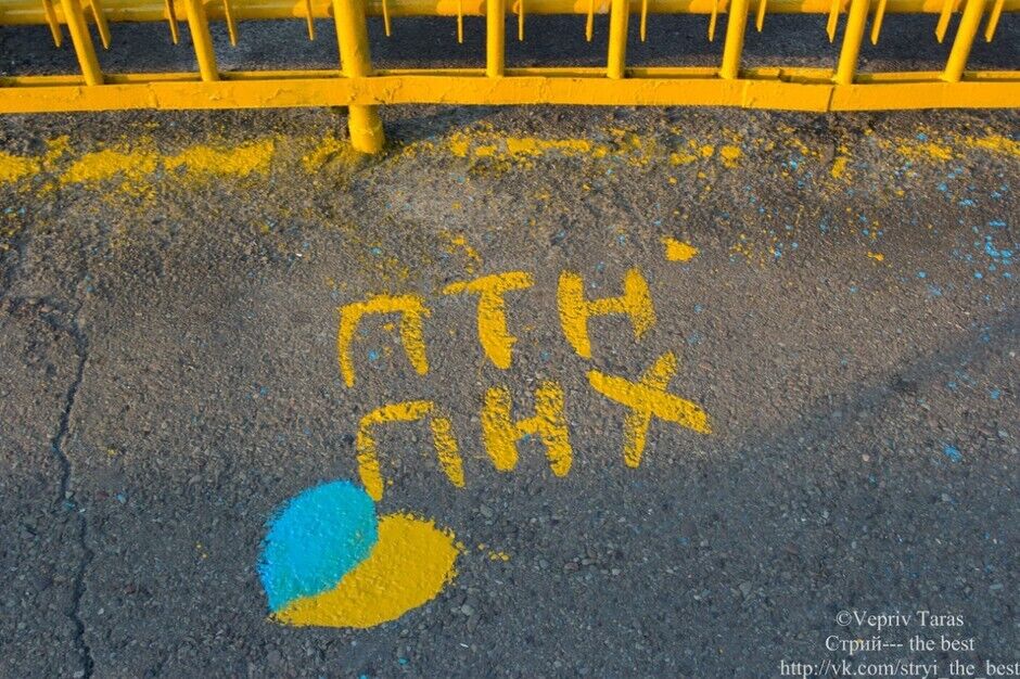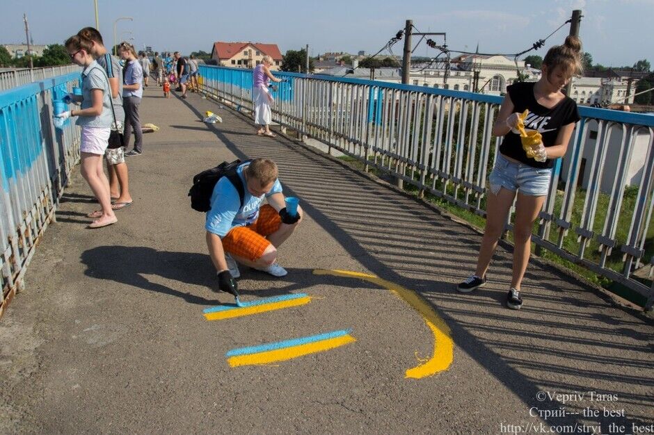 2 августа активная молодежь города Стрыя раскрасила свой город в цвета национального флага, сообщает группа "Стрий – the best" "ВКонтакте". Желто-голубой краской активисты покрыли мост в городе. Молодые люди также оставили послание российскому президенту Владимиру Путину в патриотичных цветах.