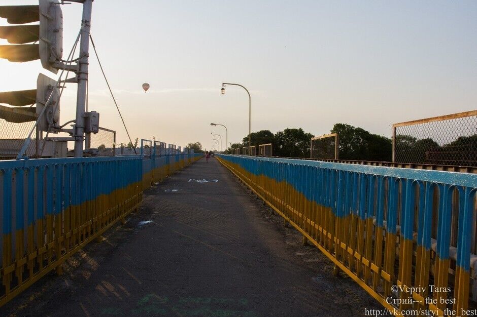 В Стрые на Львовщине появился желто-голубой мост. Фоторепортаж