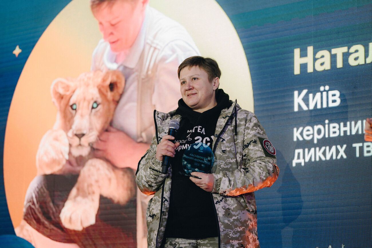 Наталья Попова (село Чубинское, Киевская область). С 2018-го занимается спасением диких животных. С начала полномасштабной войны вместе с волонтерами UAnimals помогала вывозить из зоопарков и приютов в зоне боевых действий львов, медведей, косуль. Спасла более 600 животных.
