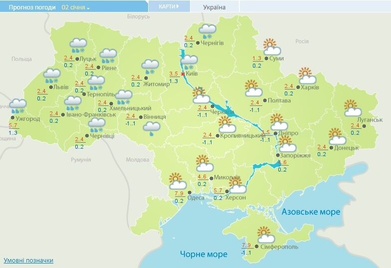 Во вторник, 2 января, в западных и северных областях Украины пройдут дожди, возможен мокрый снег, сообщает Укргидрометцентр.