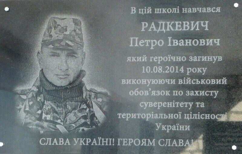 На фасаде школы в Овручском районе Житомирской области установили памятную доску в честь героя Петра Радкевича, служившего в 30-й отдельной механизированной бригаде. Об этом сообщает пресс-служба Минобороны Украины. Радкевич достойно ушел из жизни, защищая от врага родную землю. "В этой школе учился Радкевич Петр Иванович, который героически погиб 10.08.2014 года, выполняя воинский долг по защите суверенитета и территориальной целостности Украины. Слава Украине! Героям слава!" – высечено на гранитной доске в честь погибшего военного.