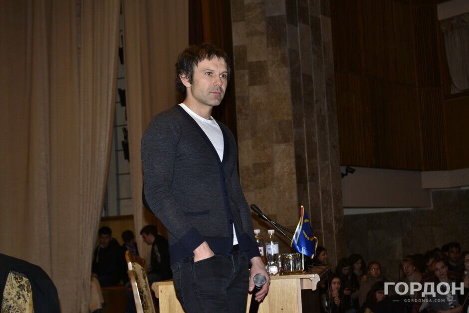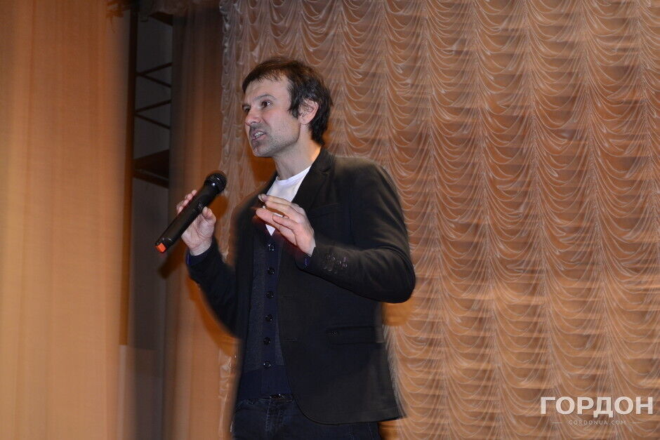 Лидер группы Океан Эльзы встретился со студентами Института журналистики Киевского университета им. Тараса Шевченко и обсудил актуальные общественно-политические проблемы страны. "Только романтики способны совершать решительные действия". – считает музыкант.