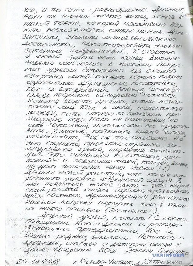Украинский политзаключенный Роман Сущенко прислал письмо коллегам из "Укринформа", в котором рассказал о событиях после этапирования в российскую колонию в Кирово-Чепецке.