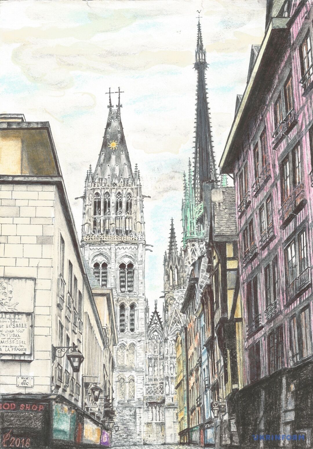 Сущенко также поздравил всех с новогодними и рождественскими праздниками и прислал рисунок Руанского собора во Франции.