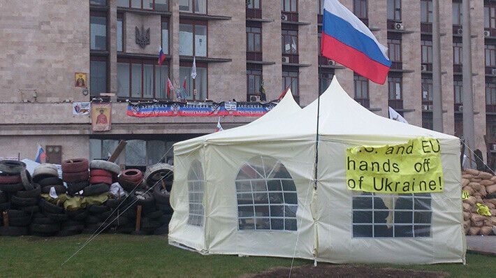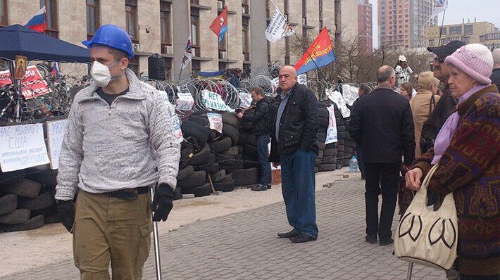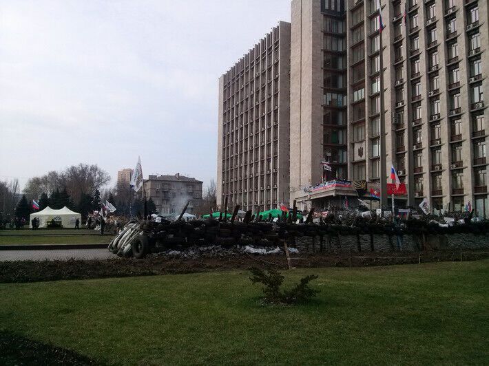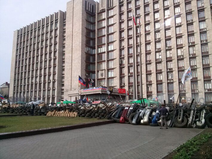 Занявшие Донецкую ОГА сепаратисты укрепляют оборону. Фоторепортаж