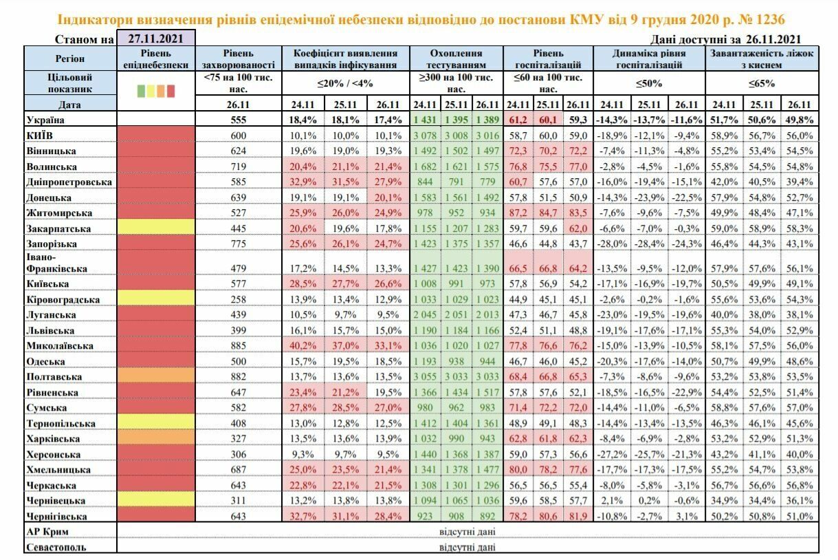 Киев и 18 областей соответствуют "красной" зоне.