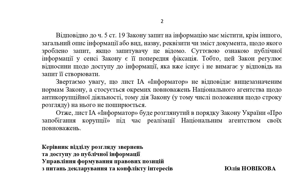 "Созданное 10 лет назад НАПК демонстрирует полный набор средств классических украинских чиновников. В противном случае мы бы увидели сообщение о, по меньшей мере, начатой проверке в ответ на публикации в СМИ", – отметил Informator.ua.