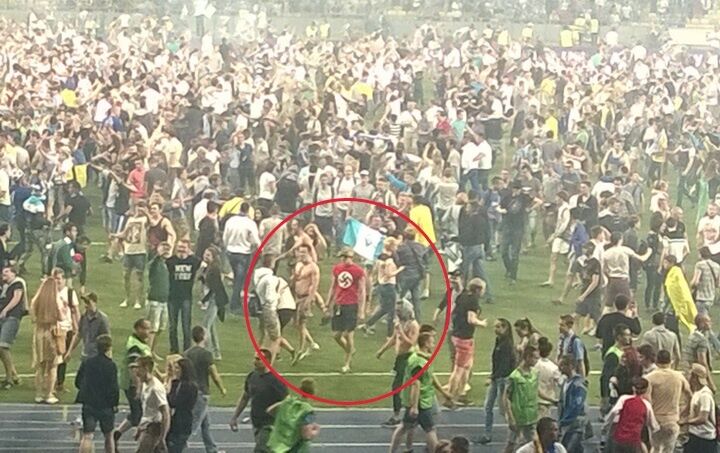Болельщик киевского "Динамо" пришел на финал Кубка Украины в футболке с нацистской свастикой