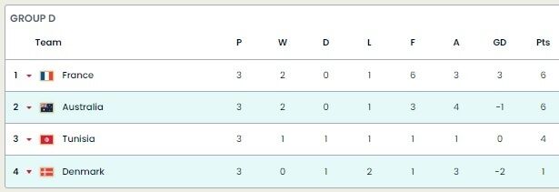 Чемпионат мира по футболу. Из группы D в плей-офф вышли Франция и Австралия