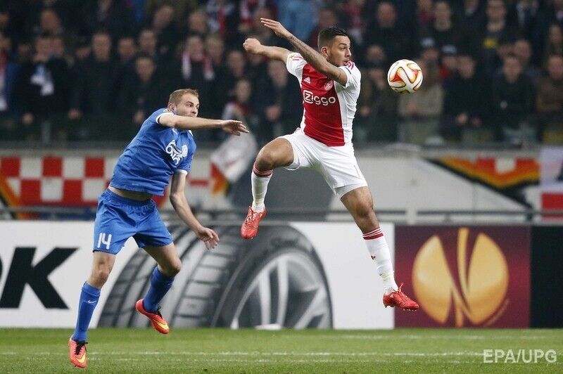 Днепропетровский "Днепр" проиграл со счетом 1:2 амстердамскому "Аяксу" в ответном матче 1/8 финала Лиги Европы. Голы в составе нидерландской команды забивали Рихедли Базур и Майк ван дер Хоорн (на 60-й и 117-й минуте соответственно). У днепропетровского клуба на 97-й минуте отметился Евгений Коноплянка. Несмотря на поражение, "Днепр" прошел в следующий раунд соревнований благодаря правилу "выездного гола" (первая игра закончилась победой украинской команды 1:0).