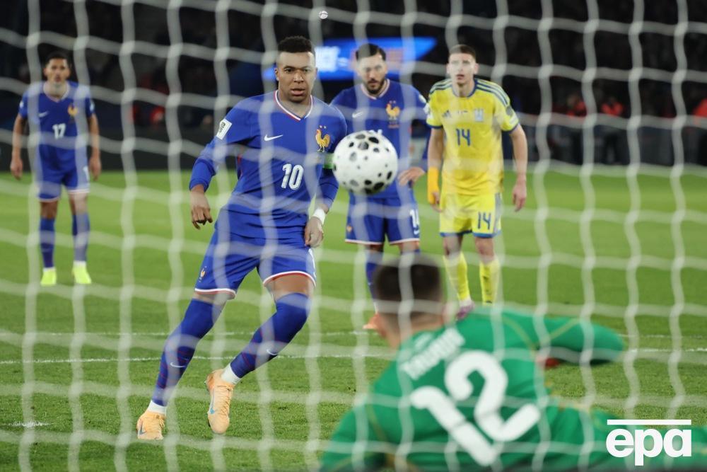 Защитник сборной Украины Тарас Михавко в штрафной площадке наступил на ногу Майклу Олисе. Пенальти на 55-й минуте уверенно реализовал капитан сборной Франции Киллиан Мбаппе, 1:0.