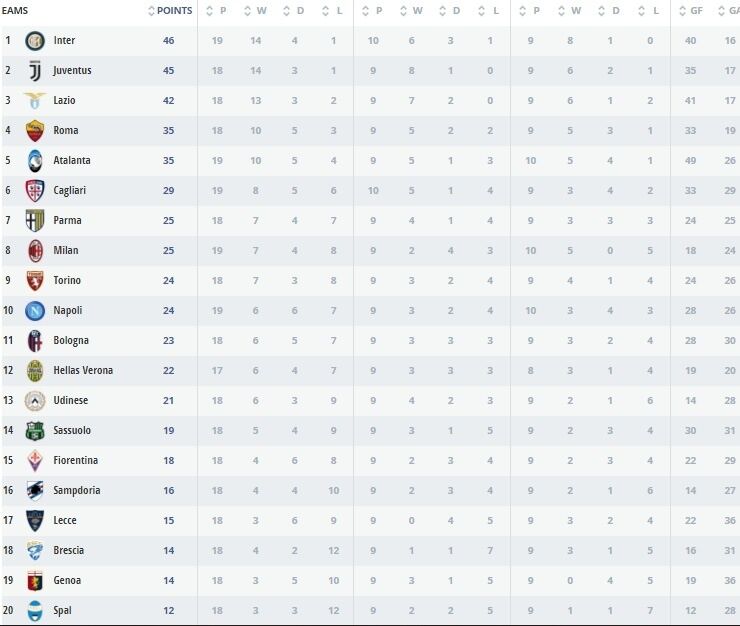 Еще шесть матчей 19-го тура Серии А будут сыграны 12 января, а заключительный поединок тура пройдет 13 января.