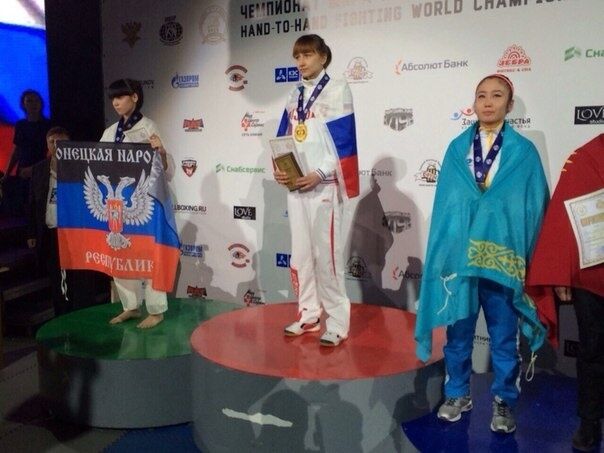 В Москве на Чемпионате мира по рукопашному бою участница из Донецка, представлявшая Украину, вышла на церемонию награждения с флагом так называемой "ДНР". Об этом сообщает сайт "Министерства иностранных дел ДНР".