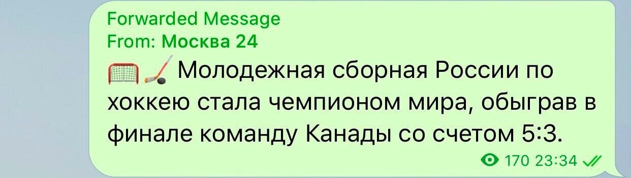 Также в своем Telegram-канале новость о победе сборной России опубликовал ресурс "Москва 24".