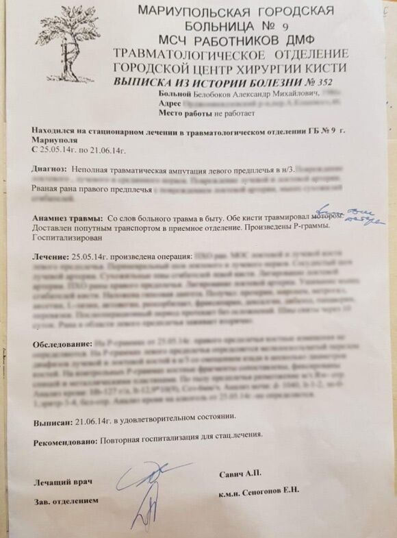 Издание "theБабель" опубликовало медицинские документы, в которых говорится, что участник “Игр непокоренных” в Сиднее, мариуполец Александр Белобоков получил травму в быту, и она не связана с участием в боевых действиях. Волонтер Мария Подыбайло заявила, что легенду о бытовой травме придумали, чтобы обезопасить Белобокова во время лечения.