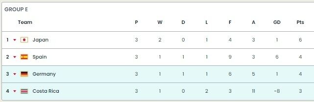 Победителем квартета стали японцы, у них шесть очков. В плей-офф чемпионата мира они вышли вместе с занявшими второе место испанцами (четыре очка). Четыре очка набрала и Германия, однако у нее оказалась хуже разница забитых и пропущенных мячей.