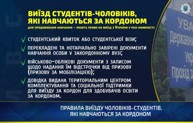Мужчинам – студентам иностранных вузов разрешено выезжать из Украины – МВД