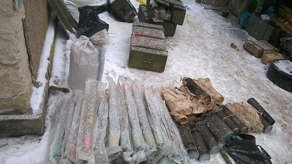 Служба безопасности Украины (СБУ) заявила в Facebook, что нашла в районе АТО большой тайник с боеприпасами.