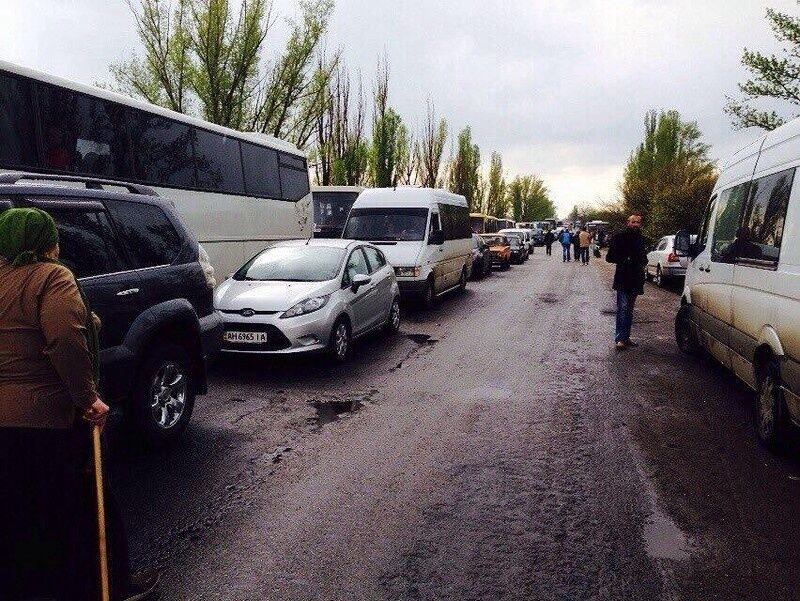 Контрастируют с пустыми улицами Донецка многолюдные блок-посты.