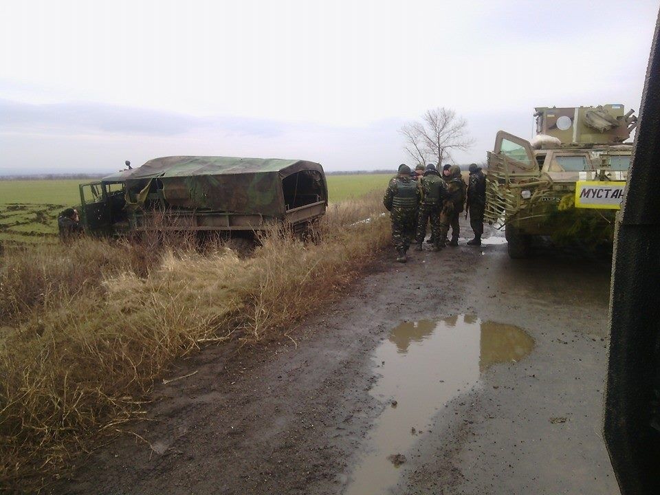 В районе Орехово Луганской области боевики подорвали КрАЗ Нацгвардии, один погибший