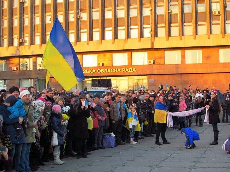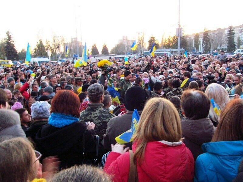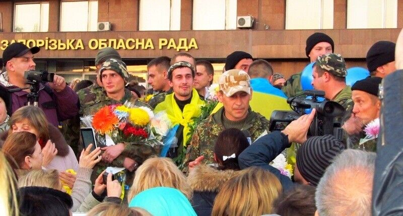 В пятницу, 7 ноября, в Запорожье возле здания областной государственной администрации в торжественной обстановке встретили более 200 воинов, прибывших из зоны проведения антитеррористической операции, сообщает пресс-служба Минобороны. Жители города встретили солдат цветами, плакатами, желто-голубыми флагамии и словами благодарности.