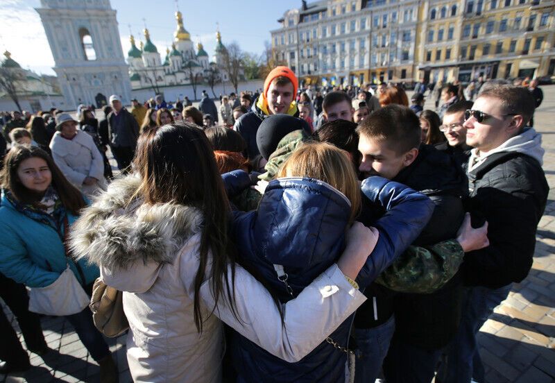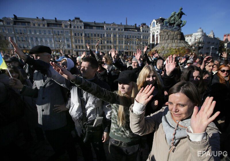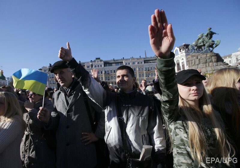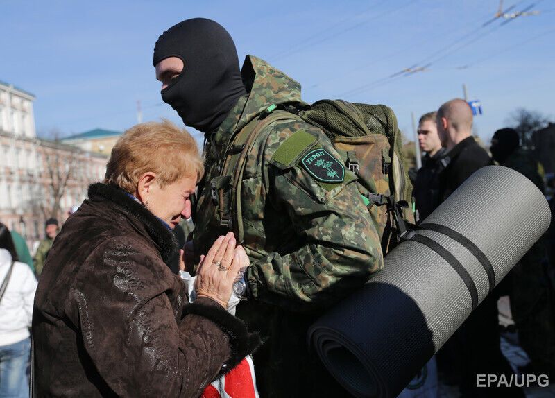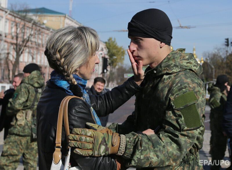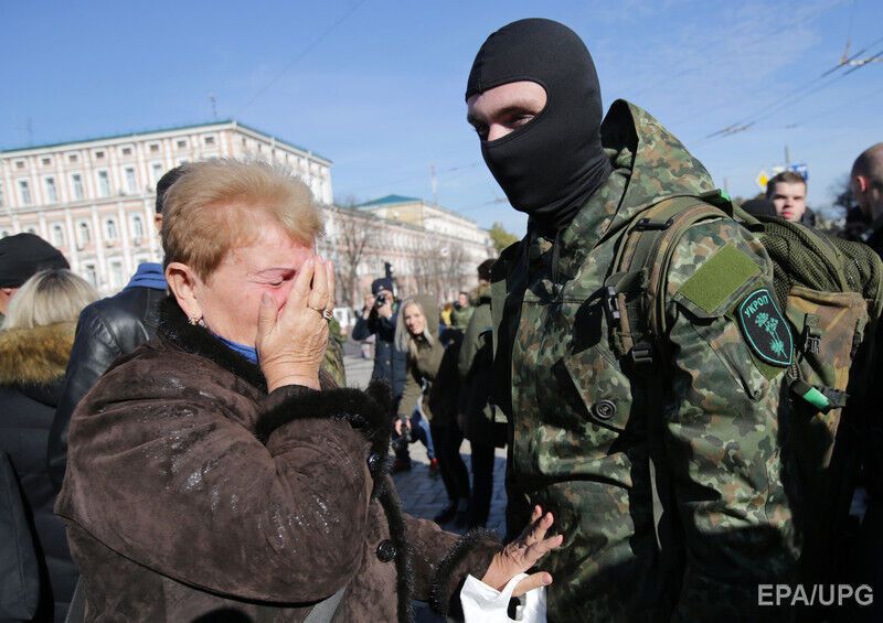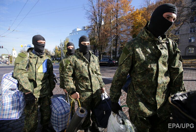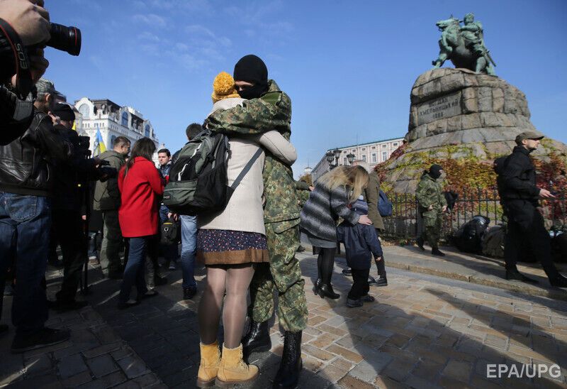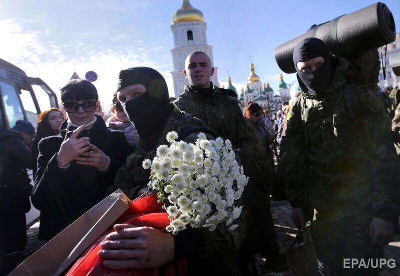 19 октября в Киеве на Софийской площади провожали в зону АТО 50 бойцов роты полка "Азов". Проводить бойцов в центр Киева пришли родственники и друзья военнослужащих. "Рота будет отправляться на южные рубежи Донецкой области для усиления наших оборонных позиций, обеспечения правопорядка и противодействия диверсионной угрозе, а также противодействия возможной угрозе со стороны российских террористических войск", – сообщил командир роты полка "Азов".