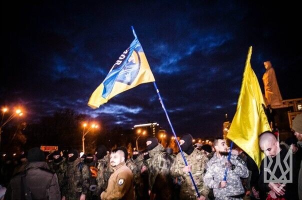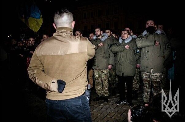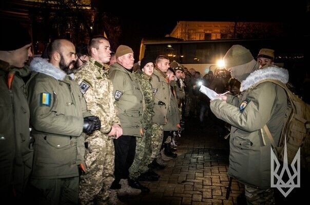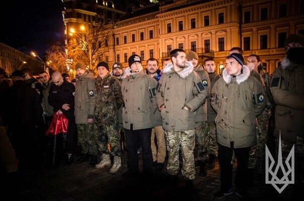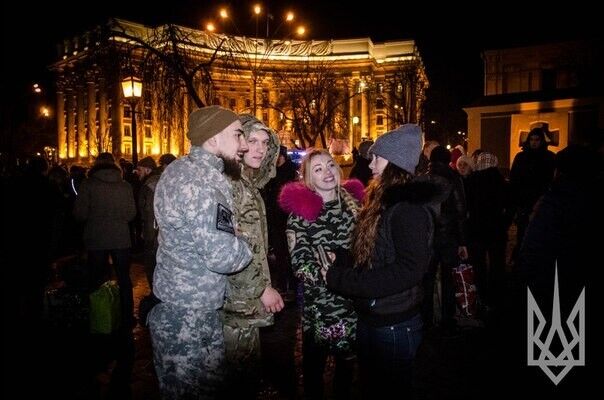 Вечером в субботу, 3 января, 200 бойцов добровольческого полка "Азов" отправились из Киева в зону АТО. Как сообщает пресс-служба "Азова" "Вконтакте", провести добровольцев на Софиевскую площадь пришли около 500 человек.