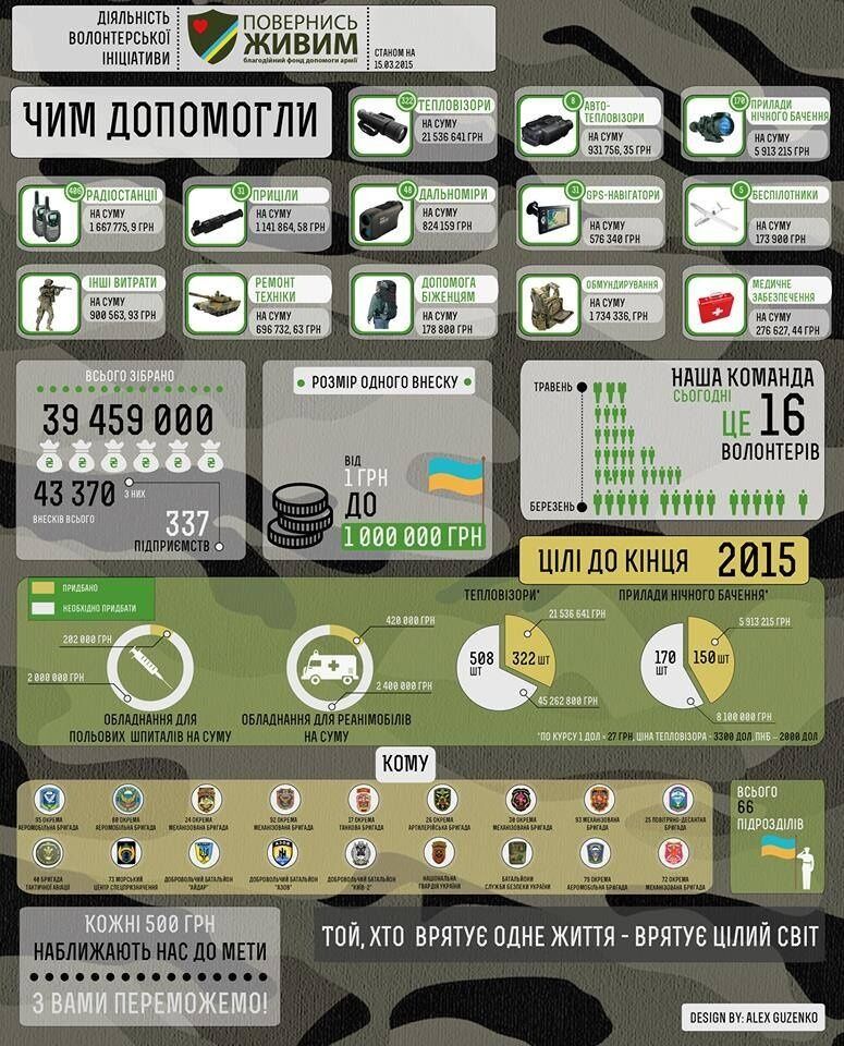 Благотворительный фонд "Повернись живим" собрал для нужд украинской армии более 40 млн грн, сообщает на странице в Facebook одна из волонтеров Ольга Кобылинская.