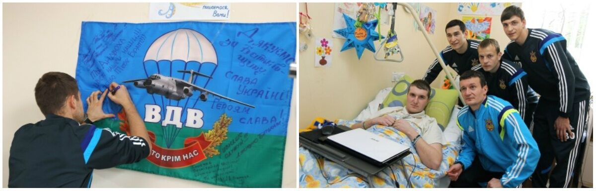 В понедельник, 30 марта, шестеро игроков национальной сборной Украины по футболу – Олег Гусев, Роман Безус, Артем Федецкий, Тарас Степаненко, Филипп Будковский и Артем Федецкий – посетили раненных украинских военных в Военно-медицинском клиническом центре Западного региона во Львове, сообщается на сайте Федерации футбола Украины (ФФУ).