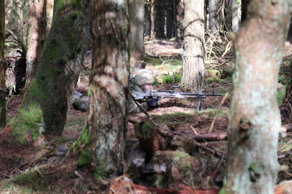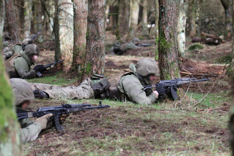 Инструкторы Норвежской национальной гвардии Heimevernet в составе норвежской миссии по обучению украинских военных в Великобритании проводят занятия по ведению боевых действий в лесной местности. Фото опубликовал в Facebook Генеральный штаб ВСУ.