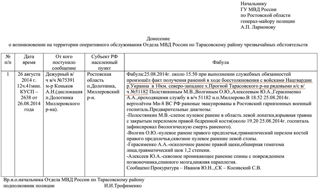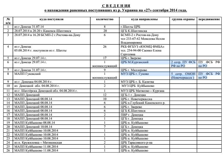 В частности, в архиве содержатся докладные записки о ранениях, полученных российскими военнослужащими на территории Украины.