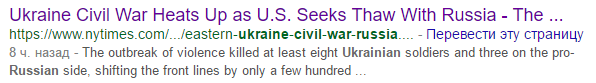 Заголовок звучал так: "Гражданская война в Украине обостряется, в то время как США стремятся к оттепели с Россией". Позже слово "гражданская" из заголовка удалили, но оно сохранилось в поисковой выдаче Google.