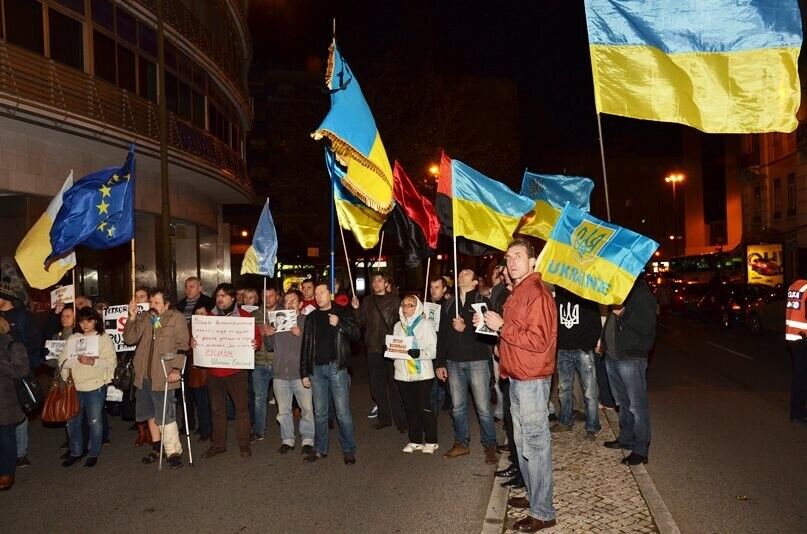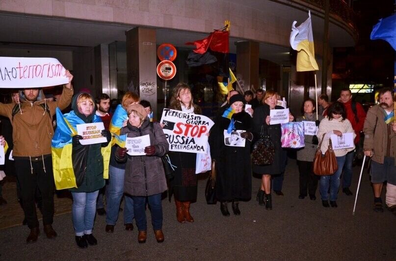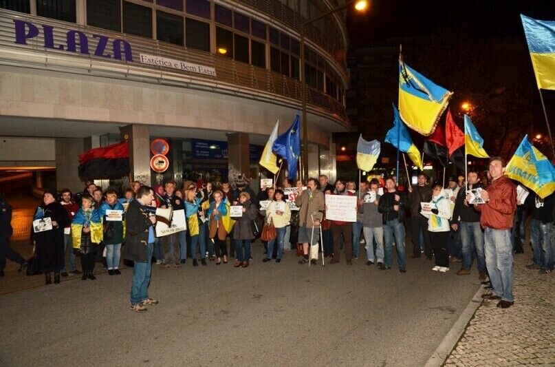 Украинская община Лиссабона провела 26 января митинг в поддержку заключенной в России украинской летчицы Надежды Савченко, сообщает пресс-служба Союза Украины в Португалии. Демонстранты, которые в шутку назвали себя "натовским легионом", пришли к российскому посольству в Португалии. Они вспомнили об обстреле Мариуполя, который унес жизни 30 человек, и скандировали лозунги на португальском языке – "Путин – террорист номер один", "Россия – основная мировая угроза", "Путин – фашист" и прочие. К митингу присоединились украинские студенты, обучающиеся в Лиссабонском университете по программе обмена. Молодые люди принесли свечи, чтобы почтить память жертв обстрела Мариуполя.
