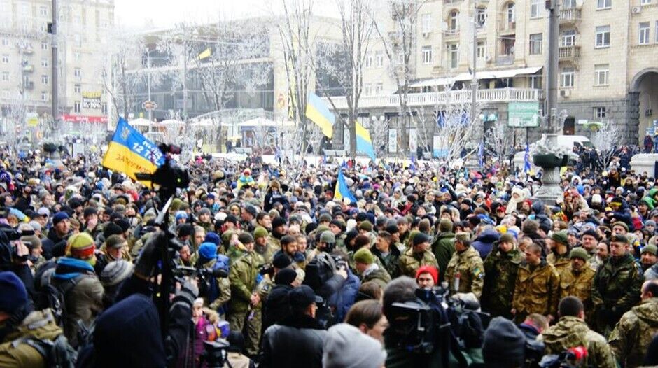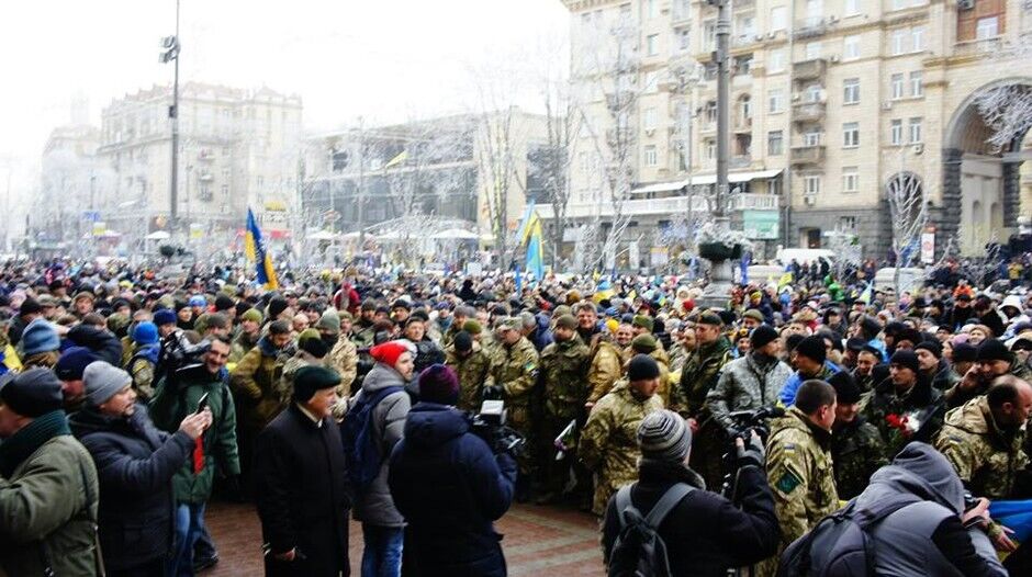 На Майдане бойцы батальона и киевляне почтили минутой молчания память всех погибших в зоне АТО.