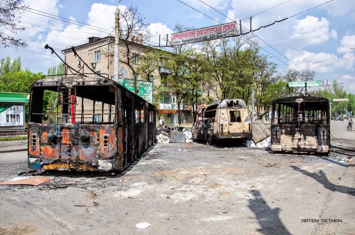 Первые признаки войны появились в Краматорске в мае прошлого года, когда местные сторонники сепаратистов подожгли в центре города общественный транспорт, намереваясь таким образом создать препятствия для вероятного продвижения ВСУ.