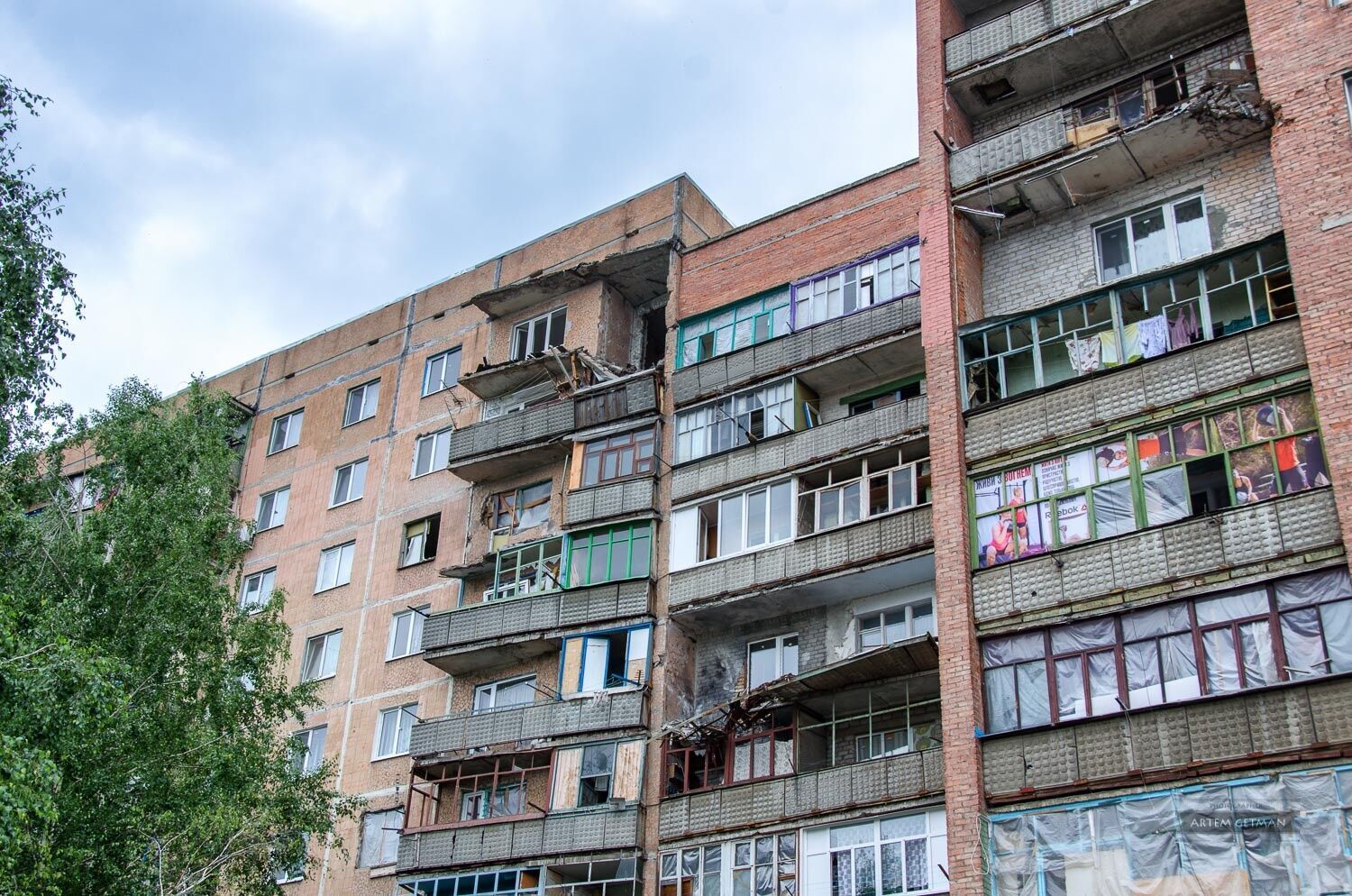 Станкострой – один из наиболее пострадавших от обстрелов районов Краматорска. Он находится ближе всего к Славянску и горе Карачун, где шли бои, и чаще всего становился жертвой обстрелов. В дом на улице Днепропетровской снаряды попадали неоднократно.