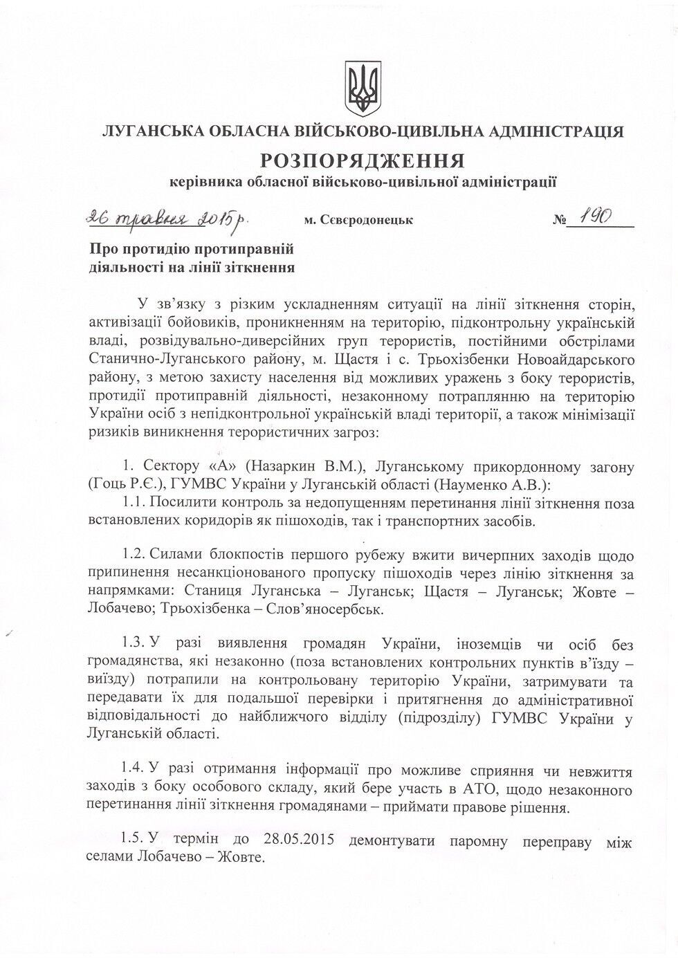 Распоряжение об усилении контроля за пропуском граждан и транспорта в Луганской области было подписано из-за постоянных обстрелов боевиками населенных пунктов и проникновения вражеских диверсионно-разведывательных групп, заявил руководитель Луганской областной военно-гражданской администрации Геннадий Москаль.