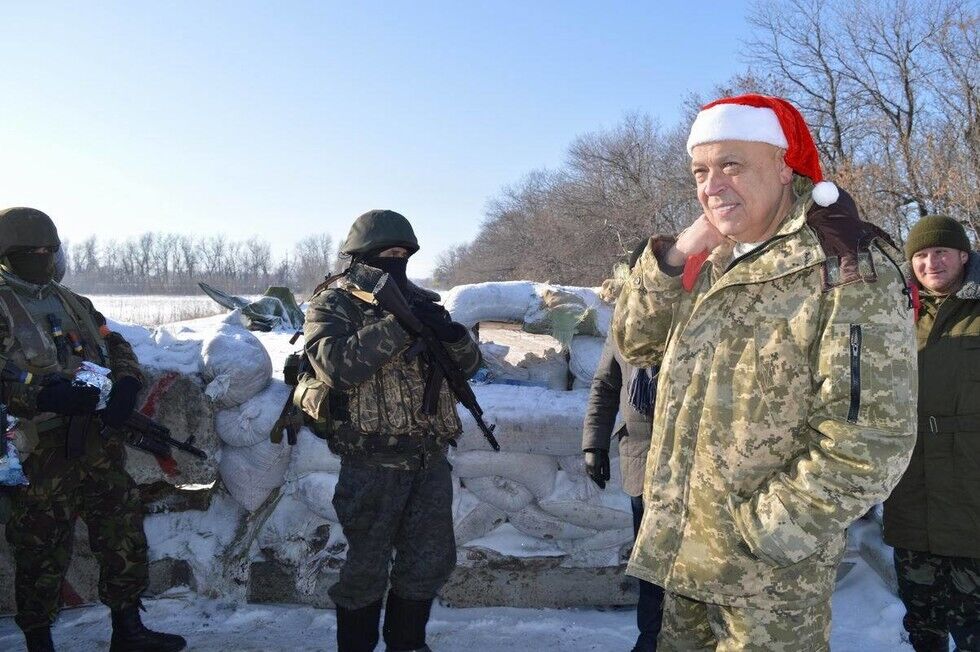 Сегодня, 31 декабря, глава Луганской ОГА Геннадий Москаль посетил крайние точки обороны украинских войск – 25-й, 29-й и 31-й блокпосты, а также село Крымское. Как сообщил Москаль в своем Facebook, он выступил в роли Деда Мороза и поздравил военных с Новым годом. "На 31-м блокпосту один из солдат попросил поменяться шапочками. Сделал это с удовольствием. Пусть эта шапочка хоть немного добавит праздничного настроения всем тем, кто новогоднюю ночь проведет не за семейным столом, а на передовой", – написал глава ОГА.