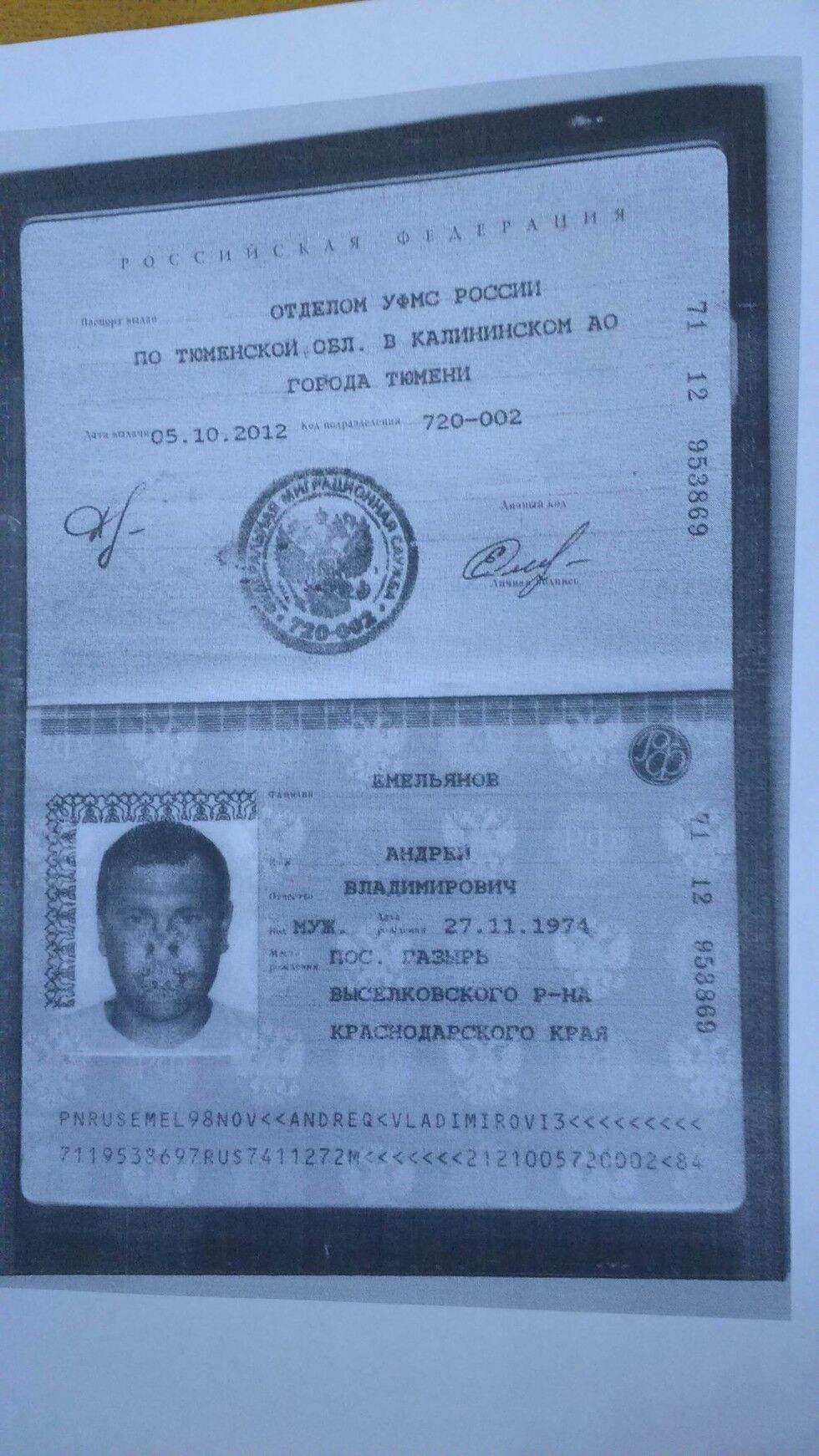 Пресс-служба Москаля опубликовала паспортные данные убитого террориста: это Емельянов Андрей Владимирович, 1974 года рождения, зарегистрирован 16 октября 2012 года в городе Тюмени.